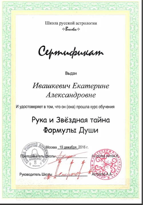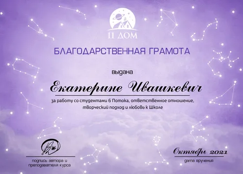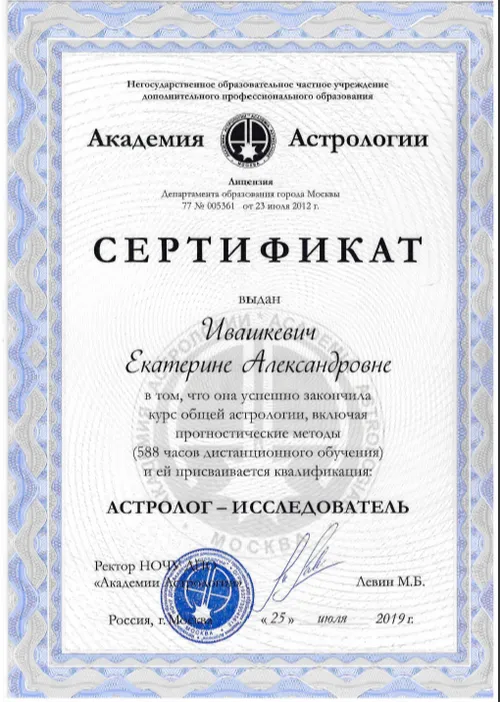 ИП Ивашкевич Екатерина Александровна предоставляю профессиональные услуги в области астрологии и психологии в г. Смоленск. Я помогаю справиться с эмоциональными трудностями, стрессом и тревогой, найти ответы на интересующие вопросы. Моя цель - поддержать вас в трудные моменты, помочь найти гармонию и улучшить качество жизни. Я предлагаю индивидуальный подход к каждому клиенту, а также гарантирую конфиденциальность и комфорт во время консультаций.