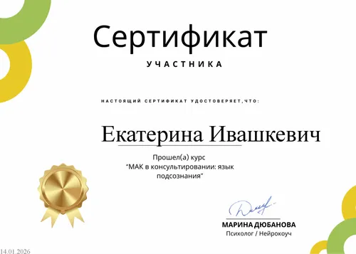 Психологические сессии помогли мне разобраться в себе. Екатерина профессионал, и я благодарен ей за помощь в трудные времена.