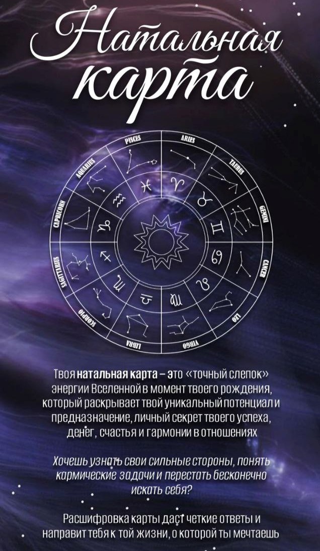 Комплексный разбор персональной астрологической карты. Оптимален для тех, кто стремится глубже понять собственную природу, выявить наиболее перспективные направления развития и достичь успеха в желаемых областях, а также повысить личную эффективность путем реализации своего потенциала согласно гармоничным космическим аспектам. В него входят: Ректификация, Разбор натальной карты, Прогностика (дирекции, соляр, прогрессии, транзит), разбор совместимости, и ответы на все вопросы по времени, такая консультация занимает 4-5 часов.